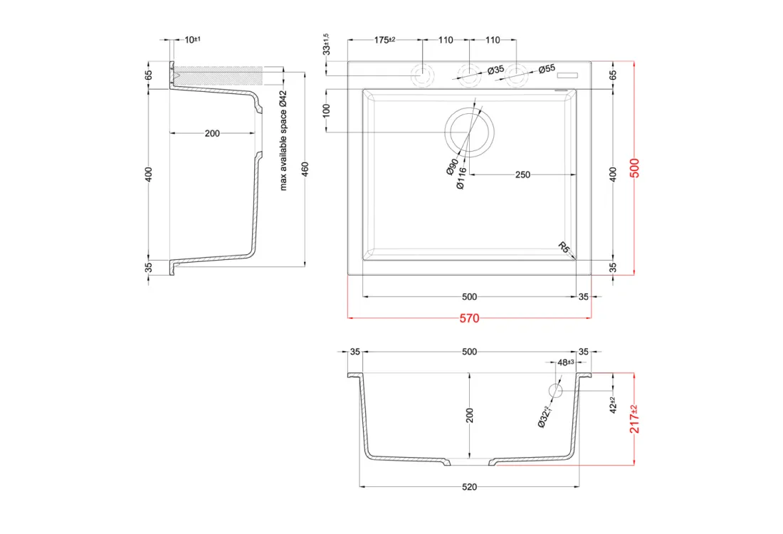 ისნკ1736 - ნიჟარა ზენ 105 548x448მმ. ელიჩი LKZ10583F01BKM თიხა