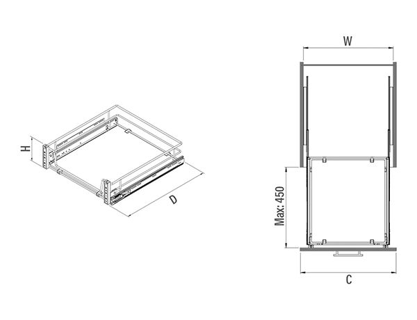 სტკ1225 – სეტკა უჯრა+კარი დაფით ტელესკოპური 60სმ. სტარ #2362-ც